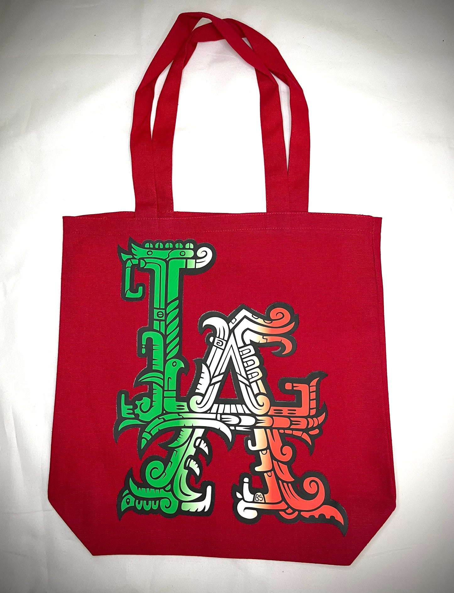 Show off your style with this eye-catching and practical Mexico LA Tote Bag. This chic accessory features a unique Aztec inspired design that is sure to turn heads. Its roomy size makes it perfect for everyday use or shopping trips. Look great and stay organized with the Mexico LA Tote Bag.