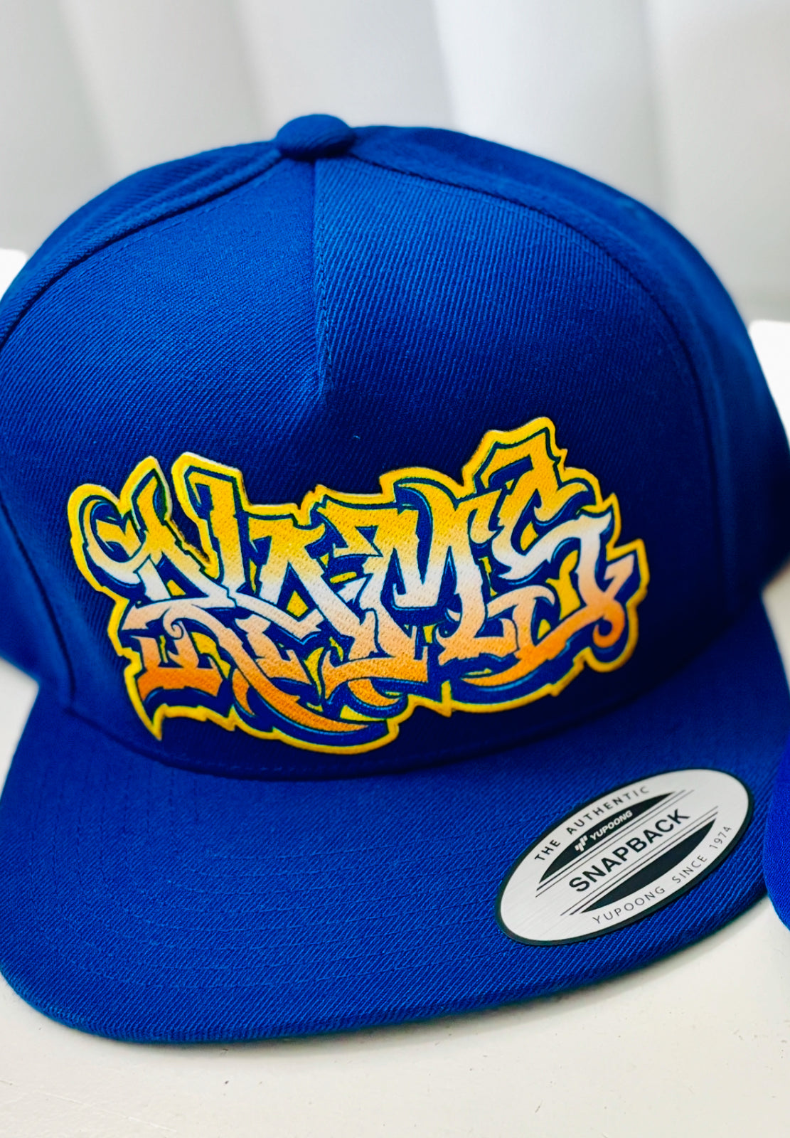 Represent your favorite football team in style with the Graffiti Hat. Featuring the bold and iconic colors of the Los Angeles team, this hat is perfect for game day or everyday wear. Show off your team spirit with this must-have.